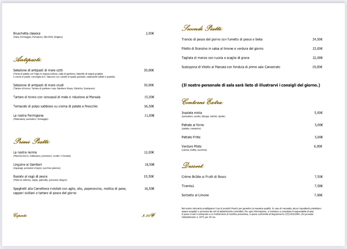 Trattoria Dionisio, Capo D’orlando Menu